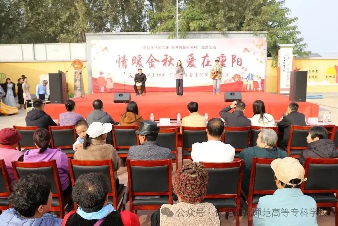 10月28日,艺术教育系师生来到美丽的东城坊镇宁村村委会,与爷爷奶奶们共度重阳节,送上属于他们的青春孝心礼。同学们用歌声传递祝福,用舞姿表达敬意,为老人们带来了吉祥与欢畅!涿州市东城坊镇人大主席肖莹莹、党委副书记张学军、党办主任组织委员肖贺然、宣传委员张清萱、保定幼专党委副书记薛艳格、组织宣传部部长杨志光、艺术教育系党总支书记叶兰、系主任姜福李在史东烁书记、宁村党支部书记张贺的陪同下出席了本次活动。
